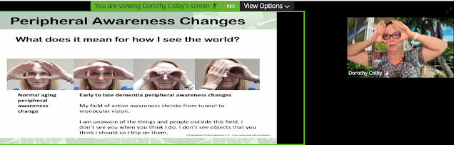 Dorothy Colby, Certified Positive Approach to Care Trainer and Hale Kūʻike Director of Community Engagement, presented virtual workshop, It's All in Your Approach: Making Positive Connections with People Living with Dementia. As dementia progresses, person’s field of active vision gets smaller, and Positive Physical Approach helps facilitate communication. You (without dementia) can follow these steps to connect more effectively with person who has dementia: